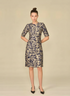 This refined shift dress showcases an elegant beige and navy floral composition against a soft cream backdrop. The elbow-length sleeves and knee-grazing hemline create a timeless silhouette, while the tailored fit ensures a polished, put-together appearance. Perfect for transitional seasons and versatile enough for both casual and semi-formal occasions.