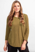 Effortlessly chic, this slub-textured tunic features a scooped neckline and 3/4 sleeves with subtle edge stitching. Relaxed shoulders and a slightly longer back hem create stylish coverage, while the hi-lo rounded hem adds a modern touch—comfortable and flattering without being baggy.