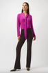 Step into effortless elegance with Joseph Ribkoff's high-waisted flare trousers. Crafted from soft, silky knit fabric, these full-length pants offer a flattering silhouette with a minimalist, feminine design. Perfect for casual or semi-formal occasions, they combine comfort and sophistication for a versatile wardrobe essential.