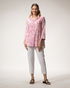 Discover the effortless style and comfort of this Toofan Linen Top Print. Made from high-quality linen, this top is perfect for any occasion. Its unique pink and white print adds a touch of elegance to any outfit. Stay cool and stylish with Toofan.
