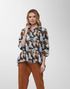 A fresh twist on a classic, this women’s button-down features a collared neckline, 3/4 sleeves, and an artistic rustic abstract print. Easy to wear and effortlessly chic, it’s the perfect go-to for polished fall style.