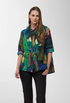 Bring a touch of the wild to your wardrobe with this button-up shirt, featuring a collared neckline, 3/4 sleeves, and a bold midnight jungle print. A statement piece that pairs effortlessly with denim or tailored pants.