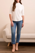 The Funnel Neck Elbow Sleeve Knit Top is the perfect blend of cozy and chic. Featuring a stylish funnel neckline, this top provides extra warmth and a modern silhouette, while the elbow-length sleeves offer a relaxed, breathable fit. The soft knit fabric drapes beautifully, making it ideal for layering or wearing solo for a more casual look. Its clean lines and versatile style make it a wardrobe staple for cooler days, easily paired with jeans, skirts, or trousers for a variety of occasions.