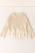 Boho and effortlessly romantic, this cream crocheted sweater features delicate lace and rose details for a truly one-of-a-kind look. Perfect for layering in fall, it adds texture, warmth, and whimsical charm to any outfit.