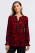 Experience elegance with the Foxcroft Alicia Velvet Paisley Long Sleeve Popover Shirt, crafted from luxuriously soft velvet featuring a seamless paisley pattern across the placket and back yoke. Its voluminous puff sleeves lend contemporary flair, while the kissing pleat at the back ensures a fluid, graceful silhouette. Ideal when paired with black pants, this shirt elevates your holiday wardrobe with sophisticated style and refined detailing.