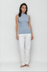 Enhance your wardrobe with the J'envie Sport I Basic Shell in Sky. This exquisite fitted shell features sophisticated dimensional geometric texturing, radiating polished modern elegance. Crafted from a premium blend of 72% viscose and 28% polyester, it drapes fluidly while maintaining a flawless shape. The refined mock neckline further elevates its aesthetic. To keep its luxurious finish, hand wash in cold water with gentle soap and flat dry. Redefine your style with this essential piece that harmonizes comfort with sophistication.