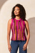 Add whimsical colors and lively patterns to your wardrobe with this Sleeveless Crew Neck Cotton Sweater Cami. Complete with fun fringe at the hem, this relaxed top is made of combed cotton for a lightweight and airy feel during those sunny days.