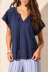 The Short Sleeve Split Neck Top with Tassel offers a fresh and playful vibe for your wardrobe. Featuring a trendy split neckline adorned with a charming tassel detail, this top is perfect for warm-weather styling. Its relaxed fit and lightweight fabric make it ideal for casual outings or summer getaways, combining comfort with effortless style.